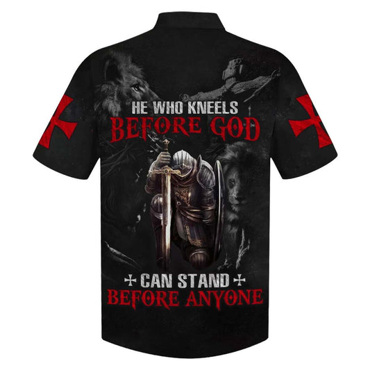 Knight Armor Of God Lion He Who Kneels Before God Can Stand Before Anyone Christian Faith Hawaiian Shirt, Christian Hawaiian Shirt, Religious Gift