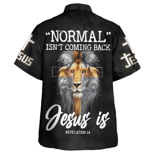 Lion Bible Verse Normal Isn't Coming Back But Jesus Is Cross Christian Hawaiian Shirt For Men, Christian Hawaiian Shirt, Gift For Christian