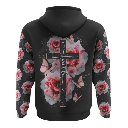 Faith Butterflies Cross All Over Print 3D Hoodie, Christian Hoodie, Christian Sweatshirt, Bible Verse Shirt