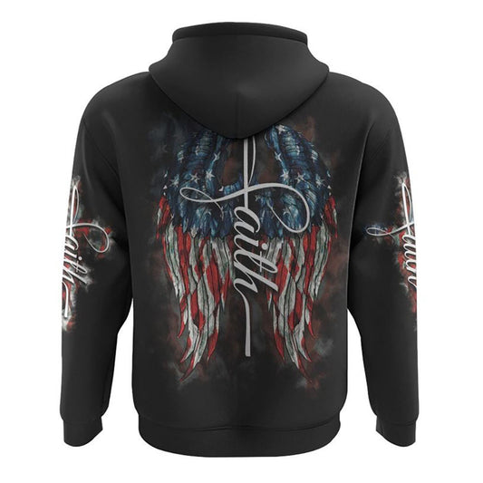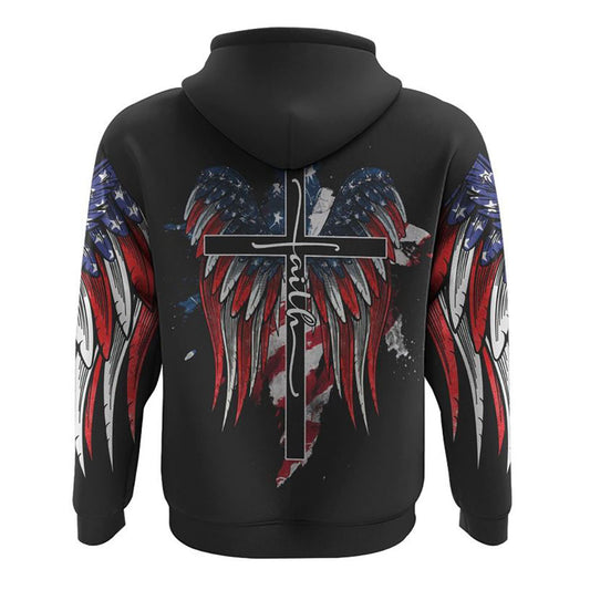 Faith American Flag Wings All Over Print 3D Hoodie, Christian Hoodie, Christian Sweatshirt, Bible Verse Shirt
