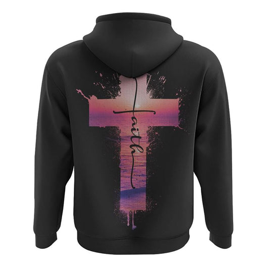 Faith Cross Pink Sunset Beach All Over Print 3D Hoodie, Christian Hoodie, Christian Sweatshirt, Bible Verse Shirt