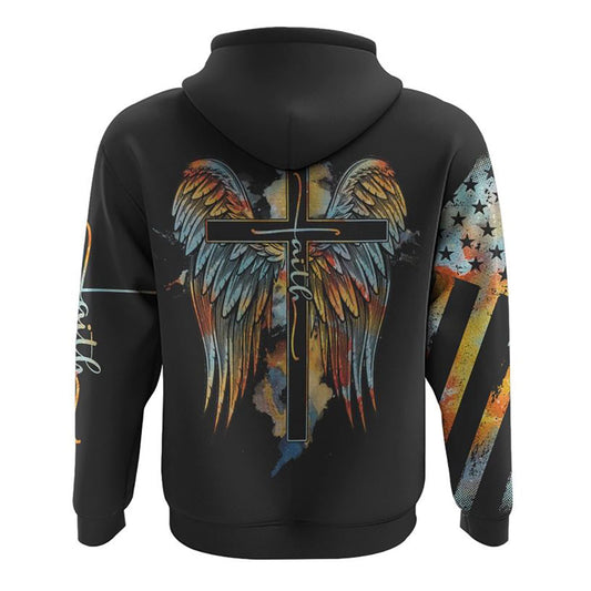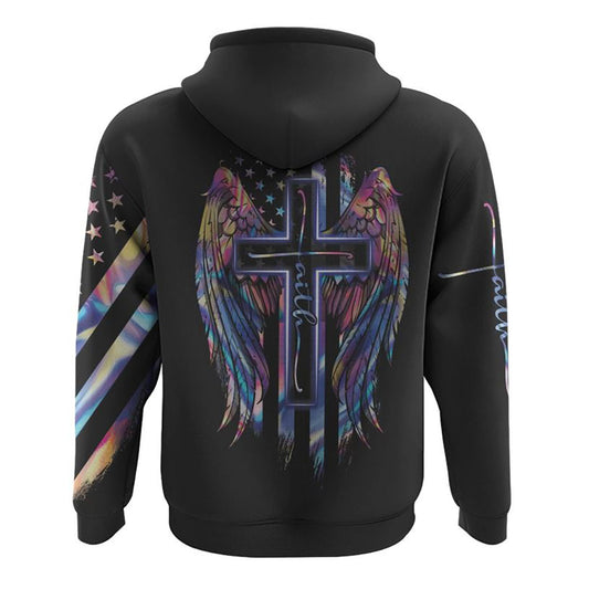 Faith Cross Wings Hologram Flag All Over Print 3D Hoodie, Christian Hoodie, Christian Sweatshirt, Bible Verse Shirt