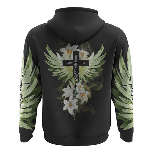 Faith Cross Lily All Over Print 3D Hoodie, Christian Hoodie, Christian Sweatshirt, Bible Verse Shirt