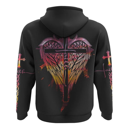 Faith Cross Wings Colorful All Over Print 3D Hoodie, Christian Hoodie, Christian Sweatshirt, Bible Verse Shirt