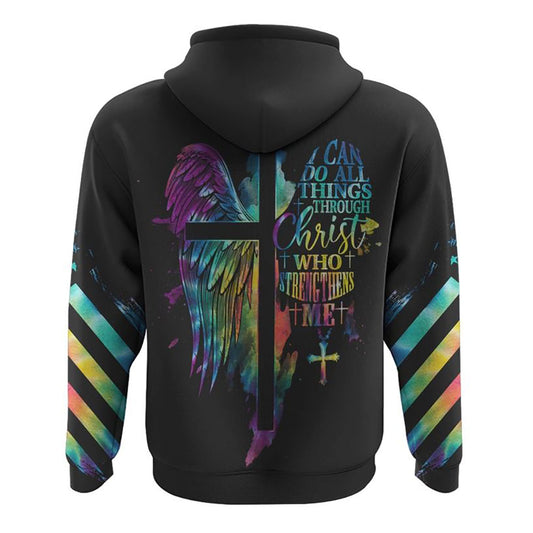 I Can Do All Things Through Christ Cross Wings All Over Print 3D Hoodie, Christian Hoodie, Christian Sweatshirt, Bible Verse Shirt