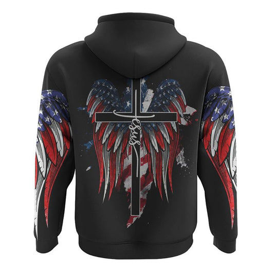 Jesus American Flag Wings Arm All Over Print 3D Hoodie, Christian Hoodie, Christian Sweatshirt, Bible Verse Shirt