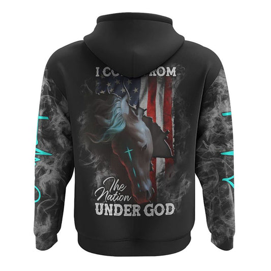 I Come From The Nation Under God Horse Flag Smoke All Over Print 3D Hoodie, Christian Hoodie, Christian Sweatshirt, Bible Verse Shirt