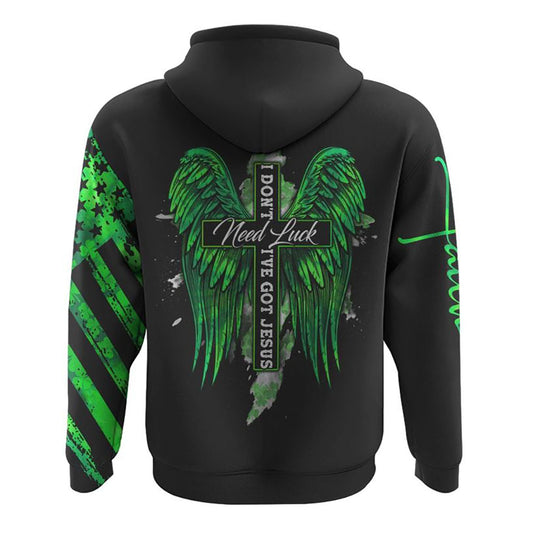 I Don't Need Luck I've Got Jesus Cross Wings All Over Print 3D Hoodie, Christian Hoodie, Christian Sweatshirt, Bible Verse Shirt