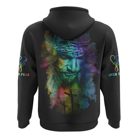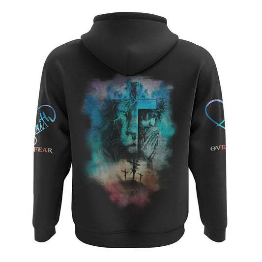 Jesus Faith Over Fear All Over Print 3D Hoodie, Christian Hoodie, Christian Sweatshirt, Bible Verse Shirt