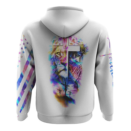 Jesus Lion Cross Colorful Flag All Over Print 3D Hoodie, Christian Hoodie, Christian Sweatshirt, Bible Verse Shirt