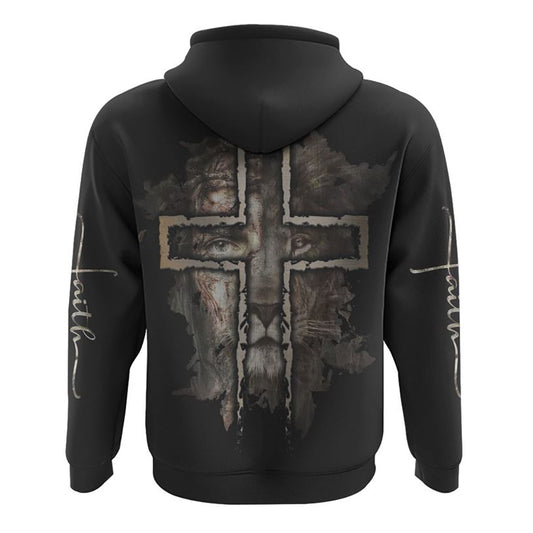 Jesus Lion Half Face All Over Print 3D Hoodie, Christian Hoodie, Christian Sweatshirt, Bible Verse Shirt