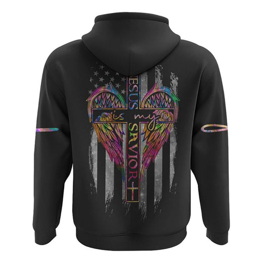 Jesus Is My Savior Colorful Wings Flag All Over Print 3D Hoodie, Christian Hoodie, Christian Sweatshirt, Bible Verse Shirt