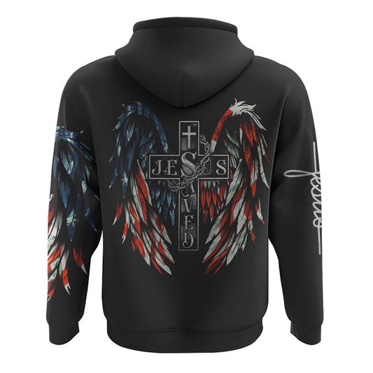 Jesus Saved America Wings Cross All Over Print 3D Hoodie, Christian Hoodie, Christian Sweatshirt, Bible Verse Shirt