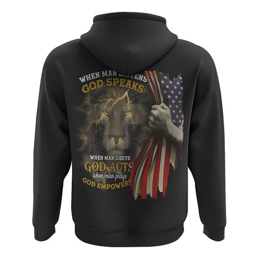 When Man Listens God Speaks Lion Flag All Over Print 3D Hoodie, Christian Hoodie, Christian Sweatshirt, Bible Verse Shirt