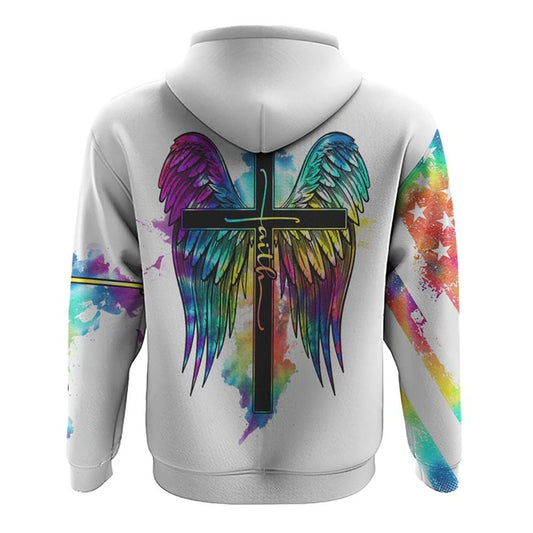 White Faith Cross Wings Colorful Watercolor All Over Print 3D Hoodie, Christian Hoodie, Christian Sweatshirt, Bible Verse Shirt