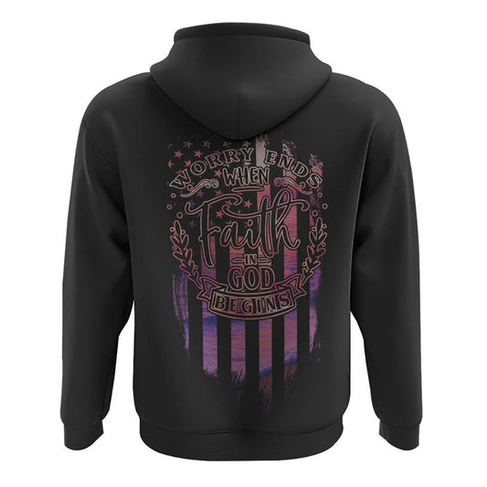 Worry Ends When Faith In God BeGins All Over Print 3D Hoodie, Christian Hoodie, Christian Sweatshirt, Bible Verse Shirt