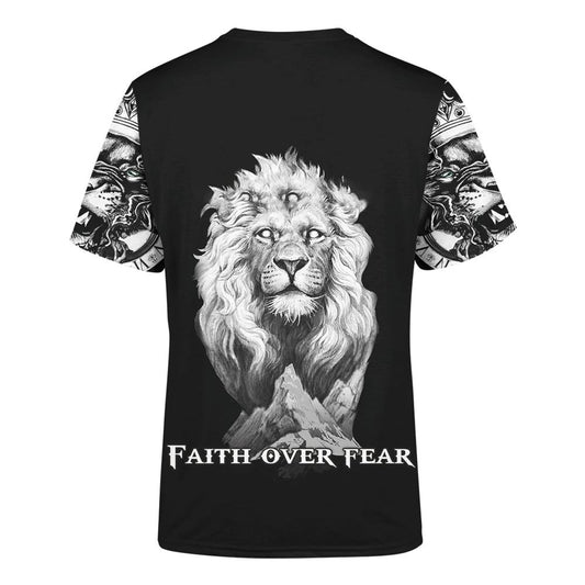 Jesus Lion Tattoo Faith Over Fear Unisex All Over Print 3D T Shirt For Men And Women, Christian T-Shirt, Faith Shirt