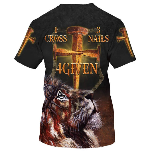 Jesus Lion One Cross Three Nails 4Given All Over Print 3D T Shirt For Men And Women, Christian T-Shirt, Faith Shirt