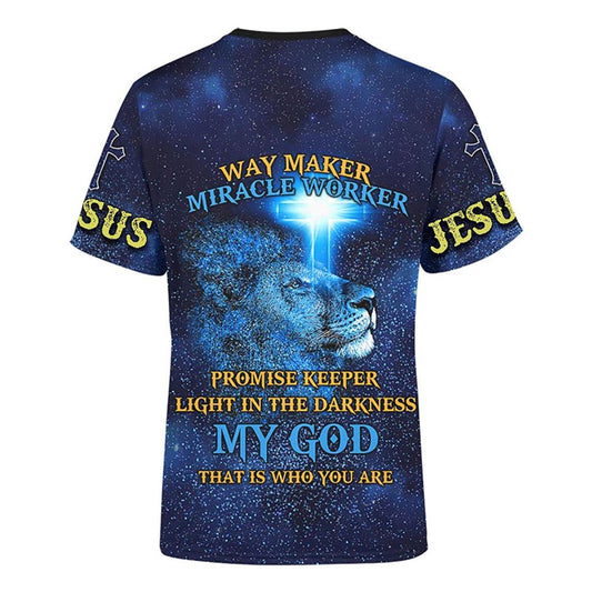 Jesus Lion Way Maker Miracle Worker All Over Print 3D T Shirt For Men And Women, Christian T-Shirt, Faith Shirt