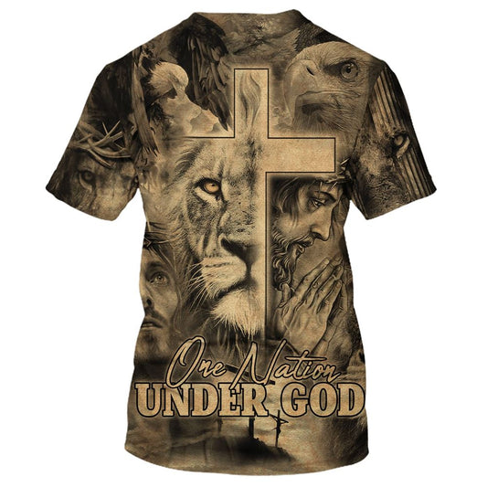 Jesus Prayer Lion One Nation Under God All Over Print 3D T Shirt For Men And Women, Christian T-Shirt, Faith Shirt