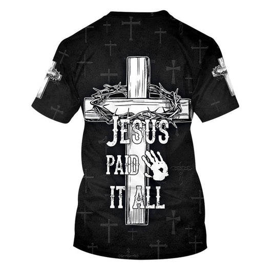 Jesus Paid It All Cross Crown Of Thorns All Over Print 3D T Shirt For Men And Women, Christian T-Shirt, Faith Shirt