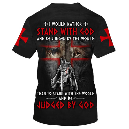 Knight Templar I Would Rather Stand With God All Over Print 3D T Shirt For Men And Women, Christian T-Shirt, Faith Shirt