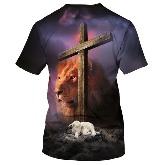 Lion And Lamb Cross Of Christ All Over Print 3D T Shirt For Men And Women, Christian T-Shirt, Faith Shirt