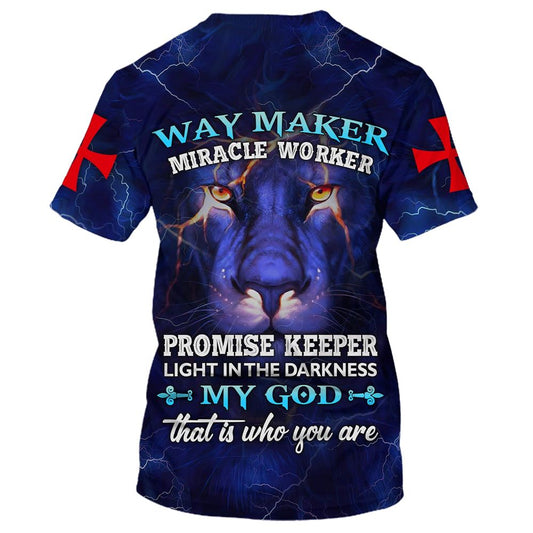 Lion Way Maker Miracle Worker Promise Keeper All Over Print 3D T Shirt For Men And Women, Christian T-Shirt, Faith Shirt