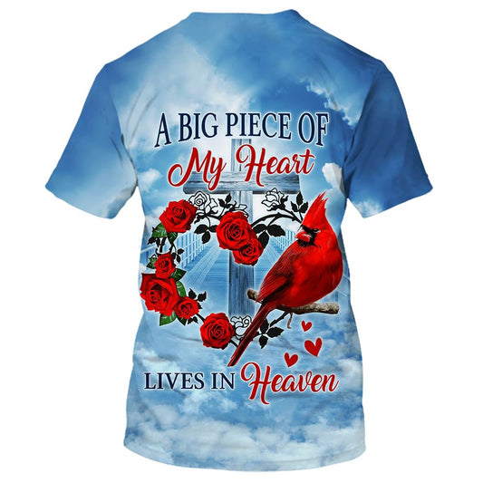 Cardinal A Big Piece Of My Heart Lives In Heaven All Over Print 3D T-Shirt, Gift For Christian, Jesus Shirt