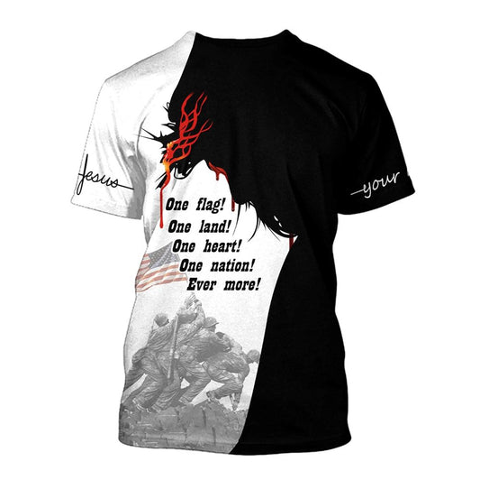 Customized God Bless America One Flag One Land One Heart All Over Print 3D T-Shirt, Gift For Christian, Jesus Shirt