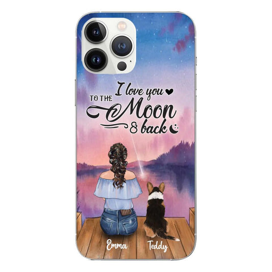 Custom Phone Case For Pet Lovers - Best Gift With Custom Names, Dogs, Cats - I Love You To The Moon And Back - Up To 5 Pets Dogs Cats