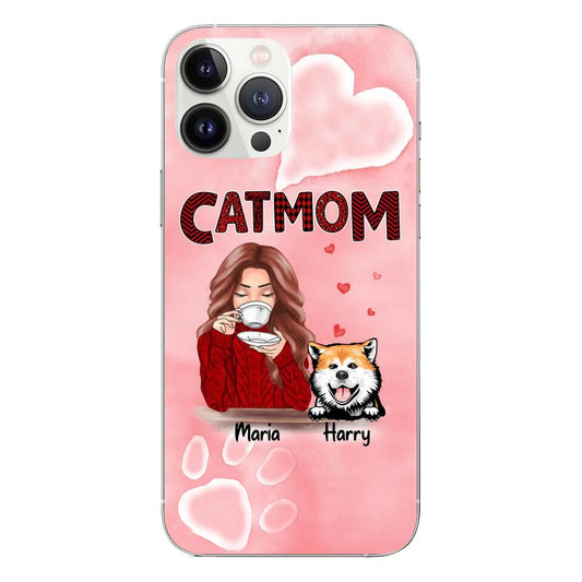 Custom Phone Case For Her - Funny Gift With Personalized Dog Cat Breeds - Chubby Mom & Pets Conversation Up To 3 Pets