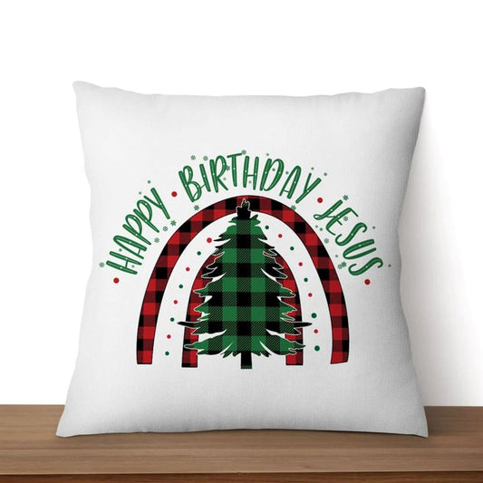 Jesus Pillow, Happy Birthday Jesus Christmas Tree Pillow, Christmas Throw Pillow, Inspirational Gifts