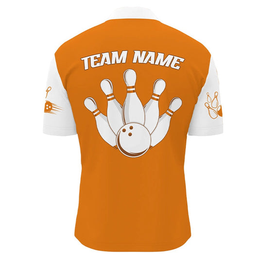 Custom Bowling Polo Shirts, Personalized Orange And White Bowling Shirt Polo & Zip Bowling Shirt For Men Bowling Jersey Bowling Team League