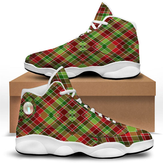 Christmas Basketball Shoes, Plaid Merry Christmas Print Pattern Jd13 Shoes For Men Women, Christmas Fashion Shoes