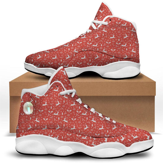 Christmas Basketball Shoes, Deer Christmas Print Pattern Jd13 Shoes For Men Women, Christmas Fashion Shoes