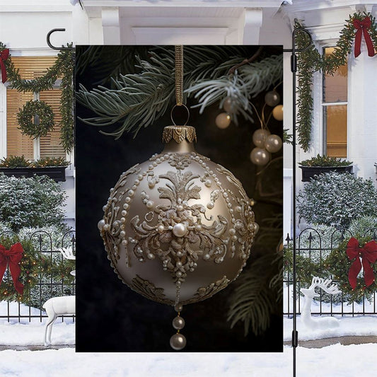Victorian Yuletide Pearl-adorned Splendor Flag, Christmas Garden Flag, Home Decor Accessories, Christmas Outdoor Decor Ideas