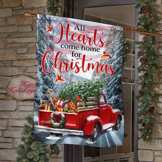 Red Truck American Flag All Hearts Come Home For Christmas Flag, Christmas Garden Flag, Home Decor Accessories, Christmas Outdoor Decor Ideas
