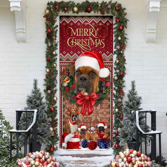 Love Boxer Dog Christmas Door Cover, Christmas Garage Door Covers, Christmas Outdoor Decoration