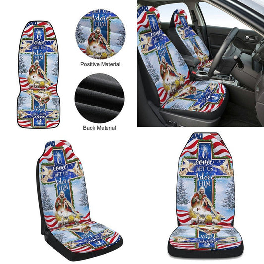 Nativity Christmas O Come Let Us Adore Him Cars Seat Cover, Christmas Car Seat Covers, Car Decor Gift