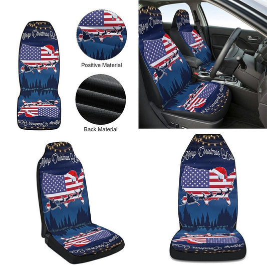 Merry Christmas Santa Claus American flag Cars Seat Cover, Christmas Car Seat Covers, Car Decor Gift