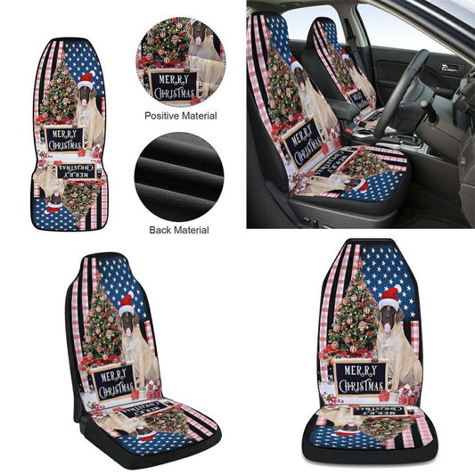 Merry Christmas English Mastiff Cars Seat Cover, Christmas Car Seat Covers, Car Decor Gift