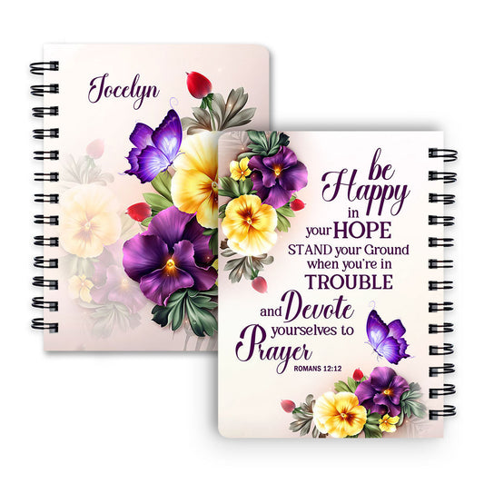 Be Happy In Your Hope Romans 1212 Flower Personalized Spiral Journal, Spiritual Gift Faith For Christians