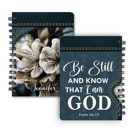 Be Still And Know That I Am God Personalized Floral Cross Spiral Notebook, Christian Spiritual Gifts For Friends