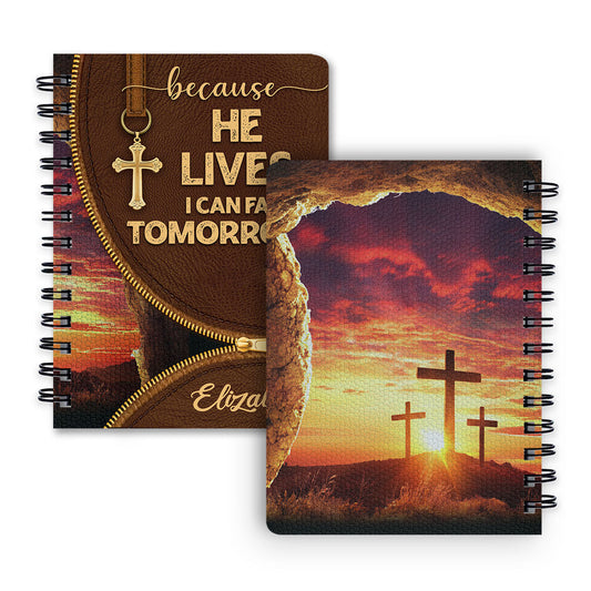 Because He Lives I Can Face Tomorrow Personalized Spiral Notebook, Christian Spiritual Gifts For Friends