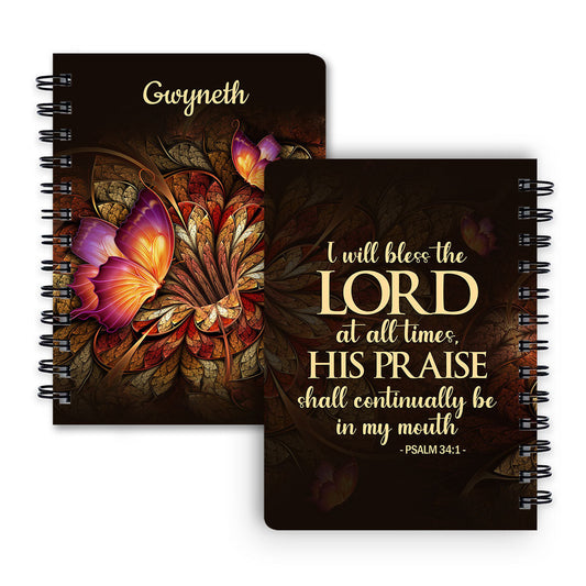 Flower Personalized Spiral Journal Psalm 341 I Will Bless The Lord At All Times, Spiritual Gift Faith For Christians
