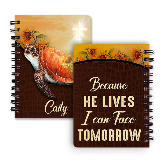 Personalized Spiral Journal Because He Lives I Can Face Tomorrow, Religious Gifts For Christian