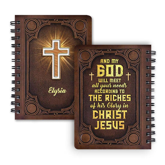 Personalized Shining Cross Spiral Journal Philippians 419 Religious Gifts For Christian People