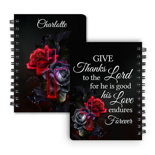 Personalized Spiral Journal Give Thanks To The Lord For He Is Good Psalm 1071 Rose And Cross, Religious Gifts For Christian