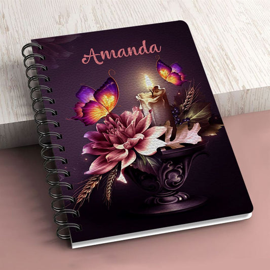 Personalized Spiral Notebook Roses And Butterfly A Woman Of Faith, Brilliant Gift For Christian Ladies